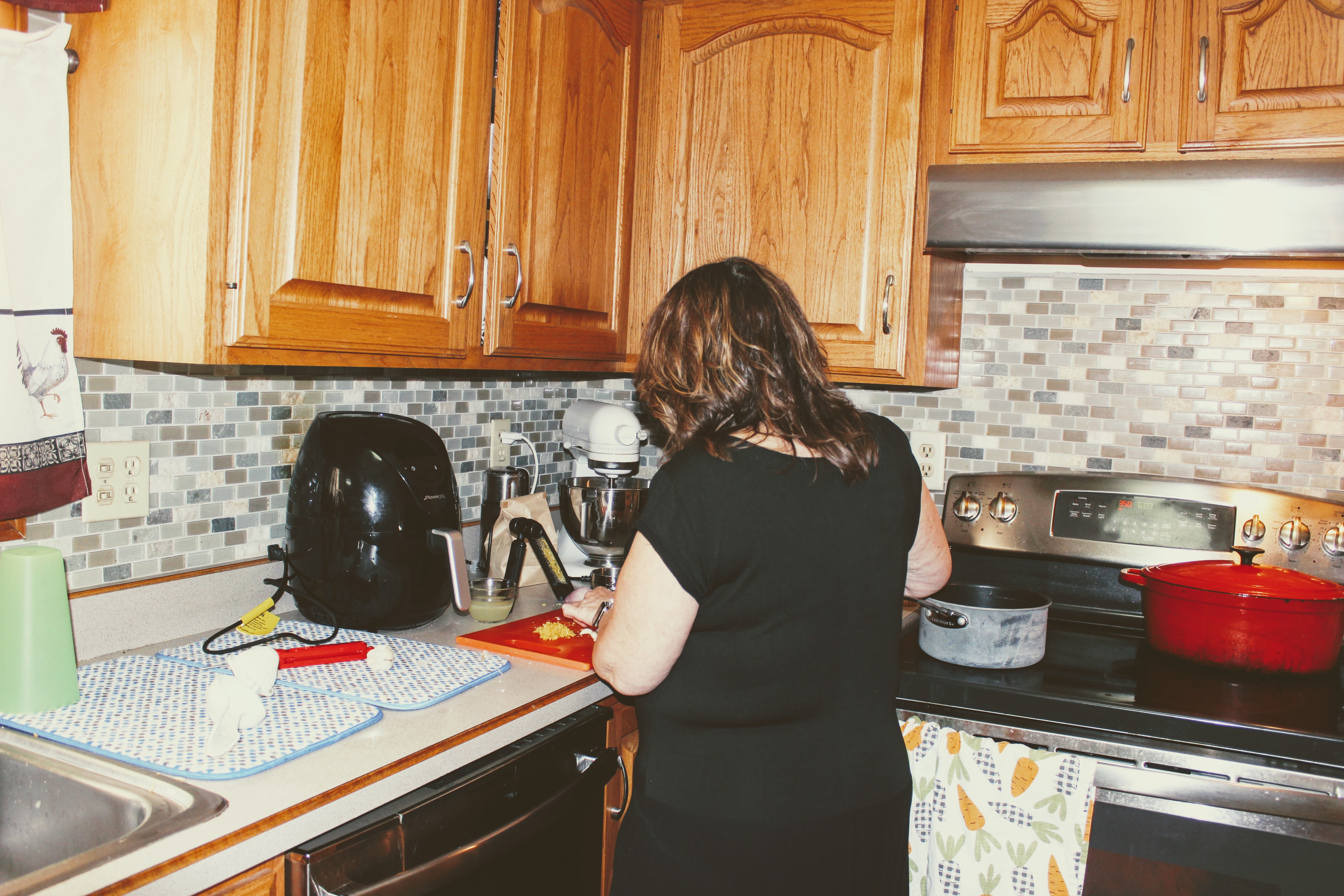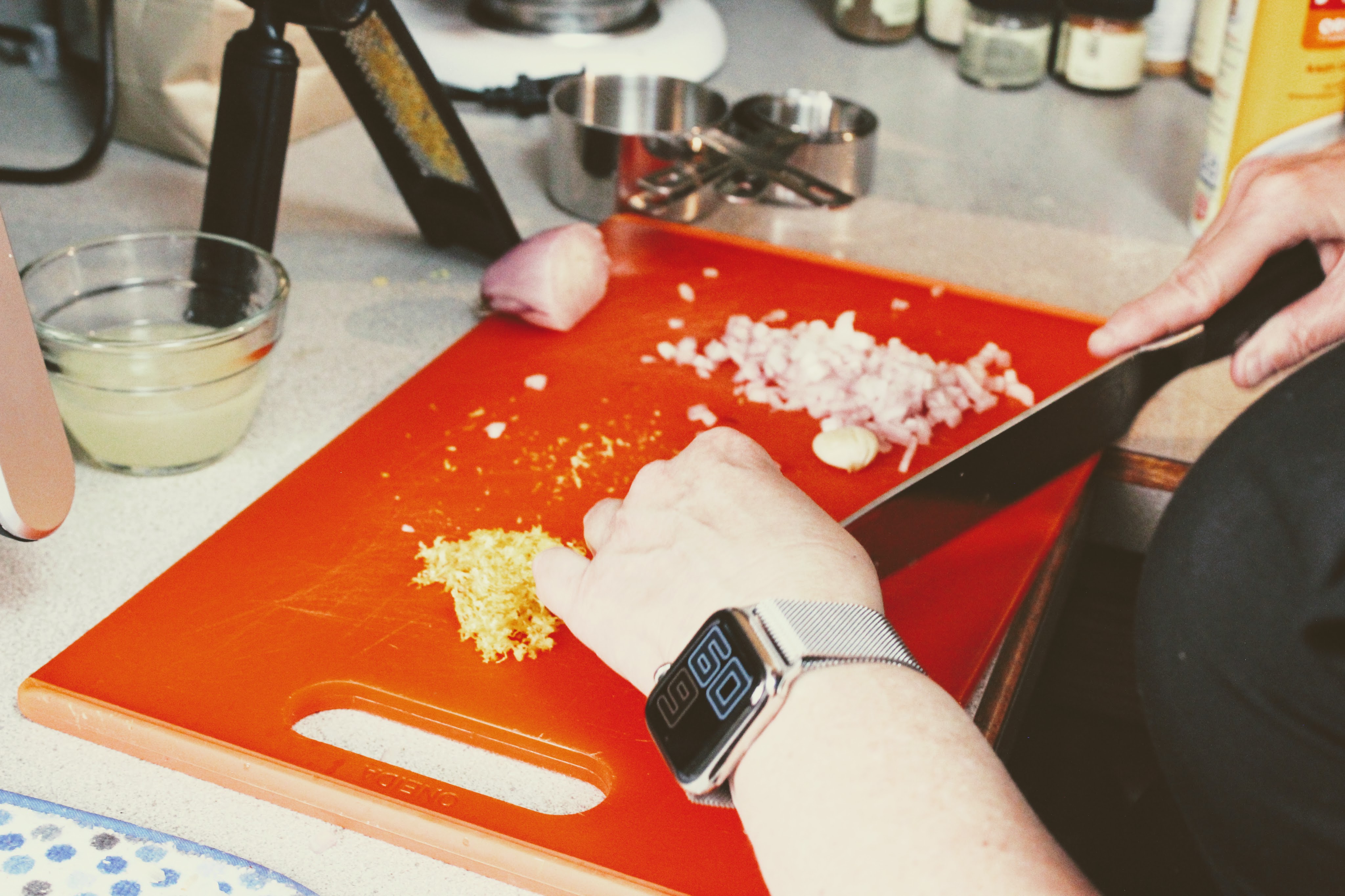 While we were outside drinking, Dee was inside prepping the main dish.