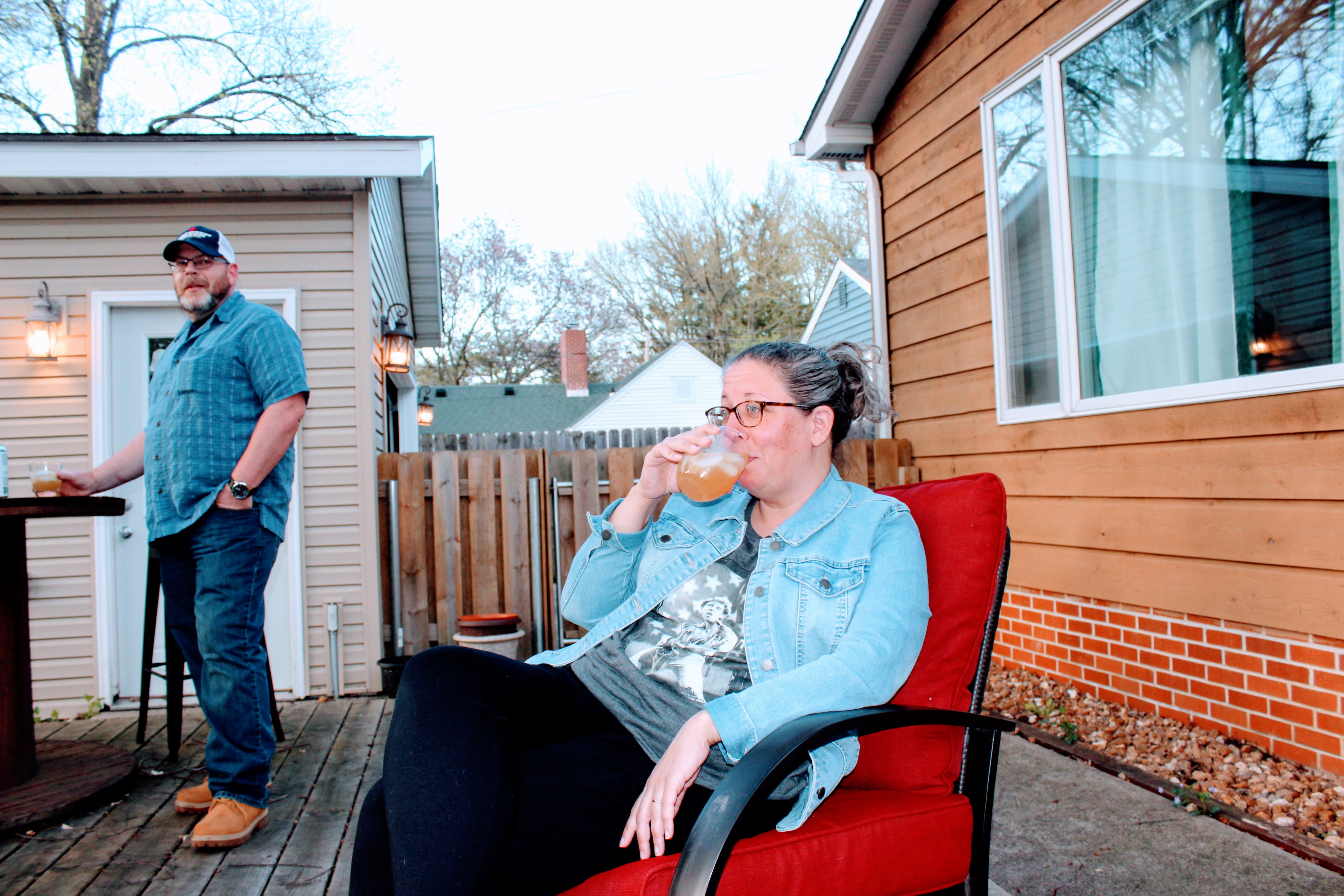 Dee was the hostess, and we took advantage of great weather to have a cocktail in the back yard. She made the Planter’s Punch, which did actually pack quite a punch, but was very good!