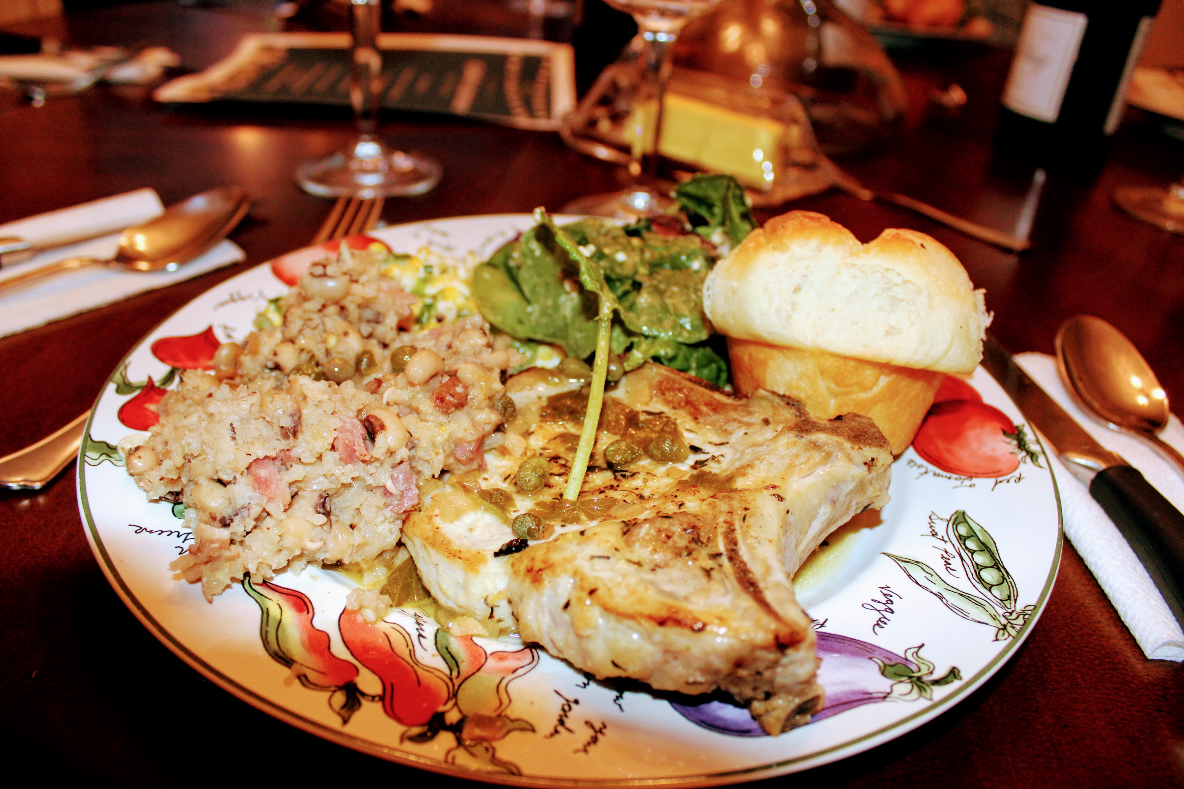 We started with the Wilted Mixed Greens with Bacon complements of Laura – it is a salad you will dream of having over and over! The dressing, the bacon, the blue cheese – all of it together makes a scrumptious salad. You can find the recipe here: https://www.thekitchn.com/jubilees-wilted-mixed-greens-with-bacon-22995449