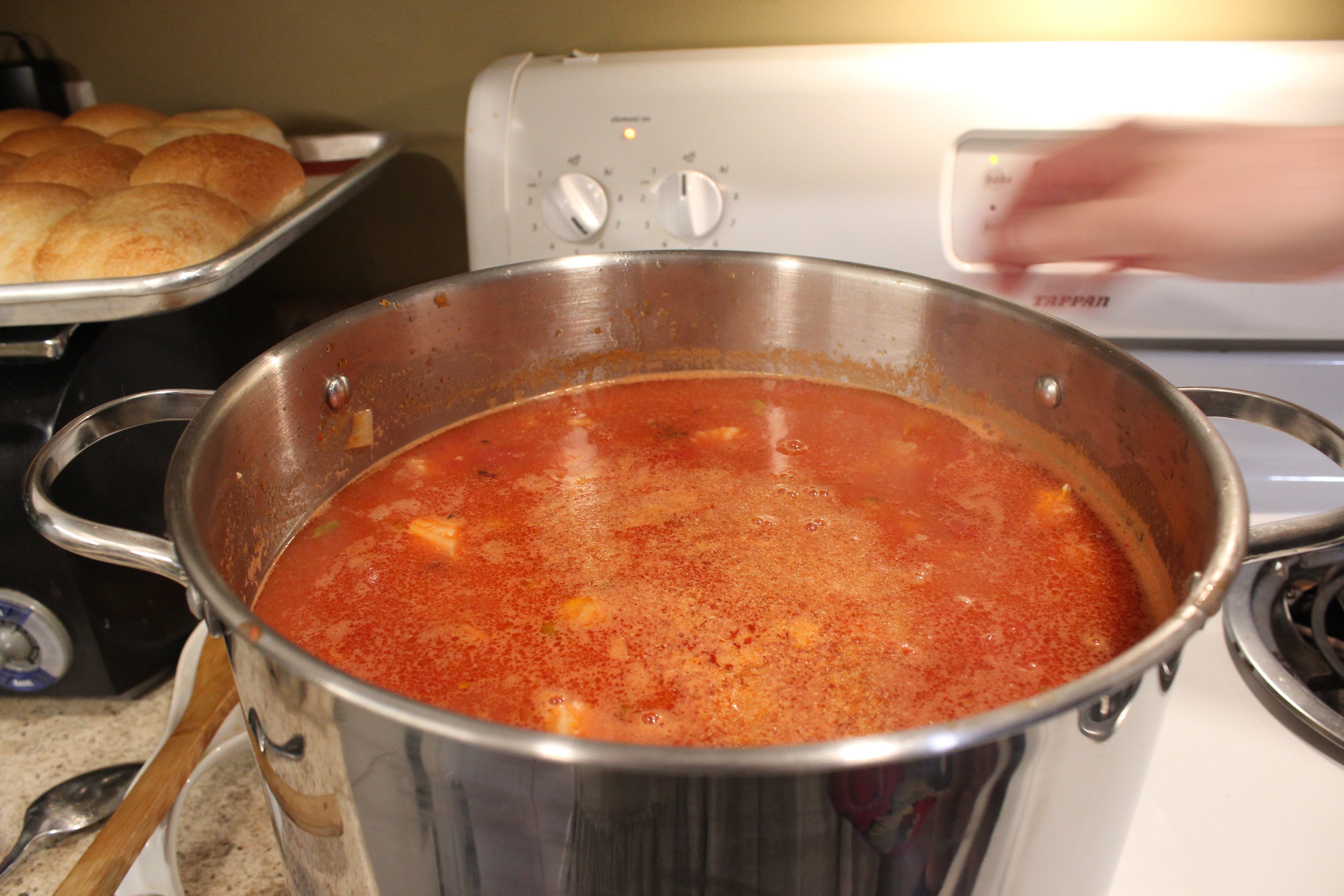 I’ll be honest, I’m not sure I’ve ever had cioppino. I know I have never made it, and now I’m not sure why. Let me just say this – it. was. so. good. In fact, Jacob gave us the leftover broth when we left! Jacob used Giada’s recipe for cioppino, with a few modifications: He replaced the fish stock with two 6.5 ounce cans of clams in sauce; one 28 ounce can of fire roasted tomatoes; four cups of vegetable stock; 1/2 cup of good fish stock; and 1/3 cup of Bragg Liquid Aminos.