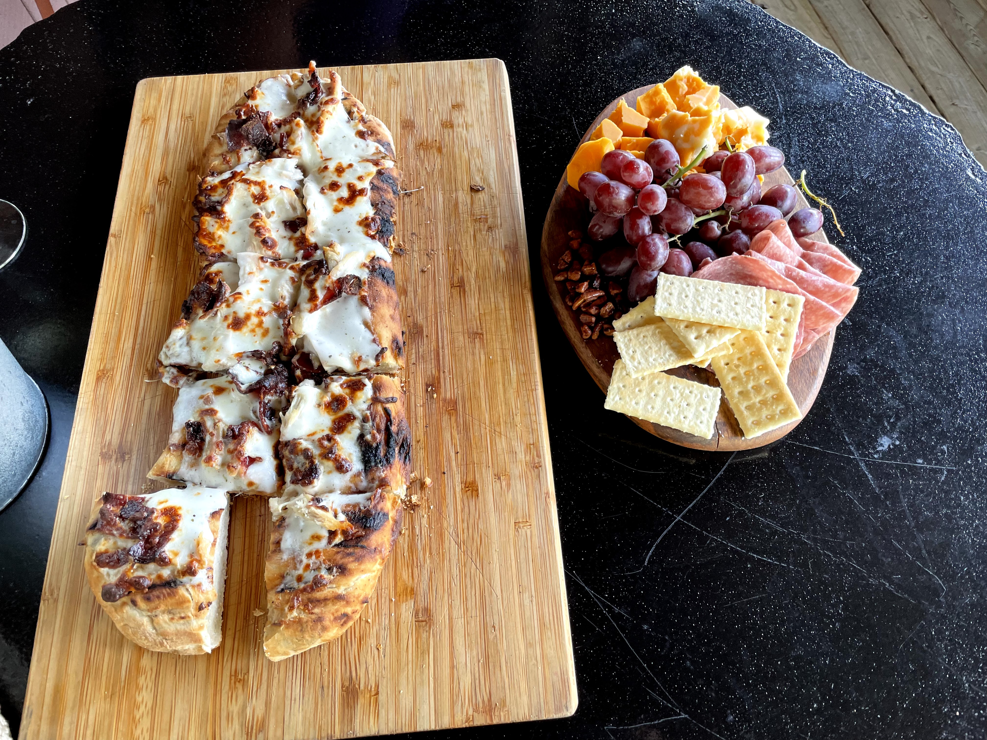 There is so much to like about this winery – beautiful grounds with lots of seating. We shared the chicken bacon ranch flatbread and a small charcuterie plate which was plenty for the two of us. They also have cabins for rent – I see a future road trip here again!