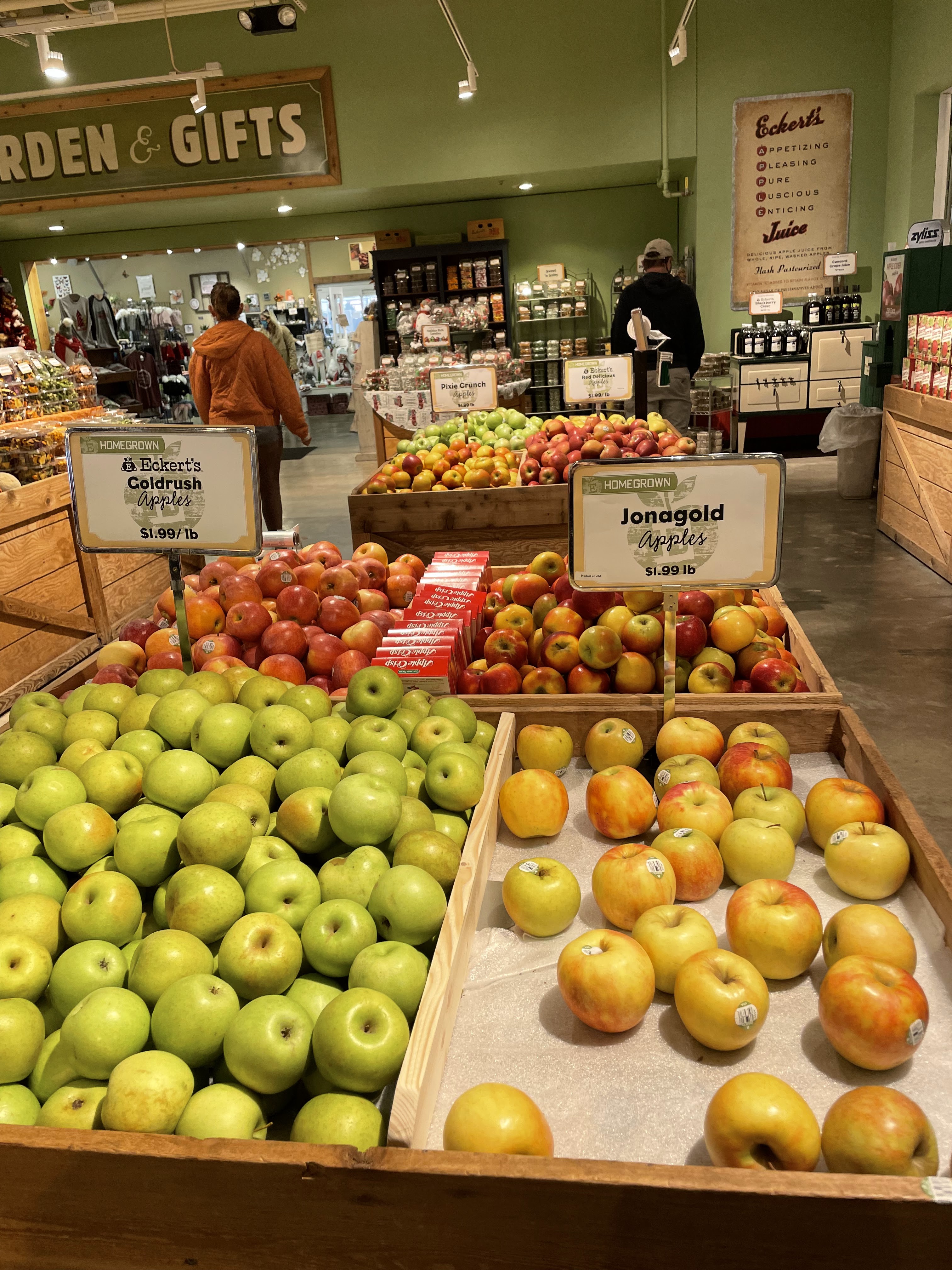 So where to next? We noticed Eckert’s on the way to The Weingarten – like really close by, lucky for us. I had heard of Eckert’s before but had never been. You can “pick your own” apples if you want, or you can head into their store (which is amazing by the way) and buy them already picked. Guess what we chose? The store of course! We both got some apples and something from the bakery – yum!