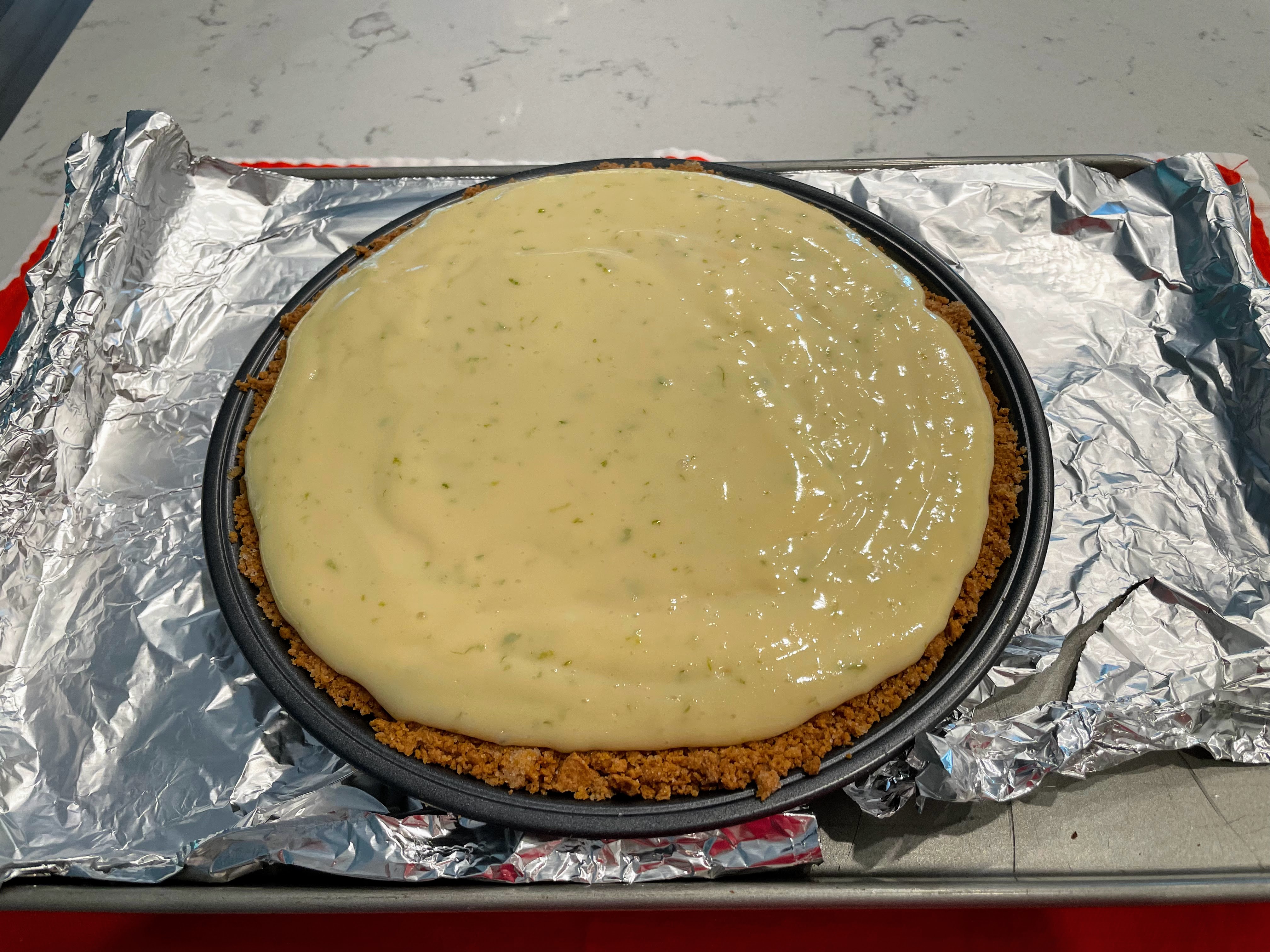 When we got back to E’s house we started preparing the Key Lime Pie. Confession – we almost forgot about it! But I’m really glad we didn’t – the pie needs about three hours in the refrigerator to set up.
