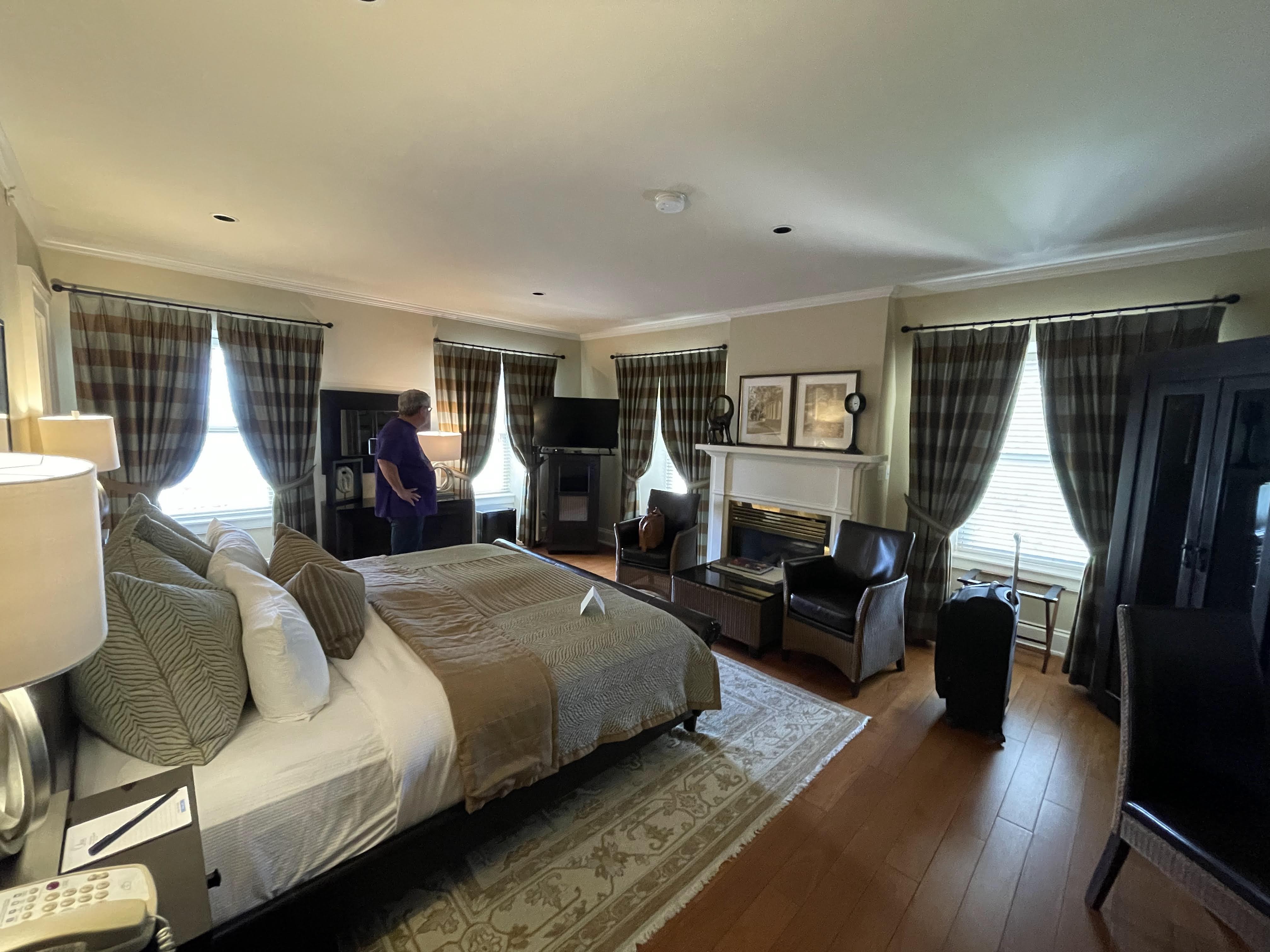 Niagara on the Lake is a well preserved colonial-style village, with an Old Town that reminded me a lot of St. Charles, Missouri – lots of boutiques, restaurants, pubs, bakeries, coffee shops, etc. We stayed at the Oban Inn – I had initially found it after researching several places, and our friend Greg also recommended it. The inn is situated on Lake Ontario and within walking distance of the restaurants and shops of the Old Town. Our room was great, with a fireplace and a view of Lake Ontario.