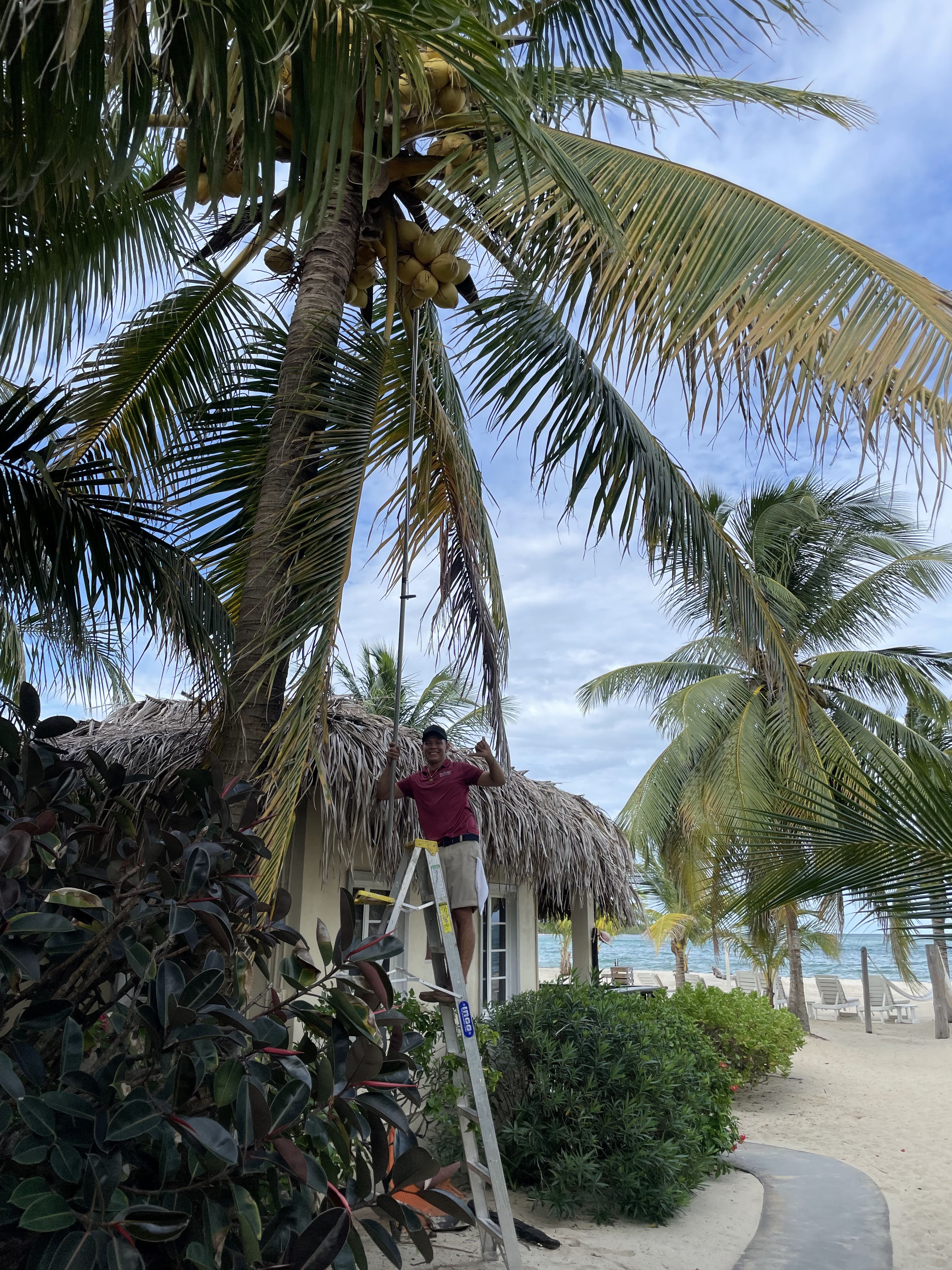 Have I mentioned the staff at CBC? Lucas and Leo were THE BEST! After our tour with Taste Belize, I asked Lucas if he could cut down one of the coconuts from the trees on the resort property so we could have some coconut water (Lyra suggested this, and it was a great suggestion). He not only cut down coconuts for us, he had us taste the coconut water, then made it better by adding coconut rum! And Leo, he offered to do our laundry after the Monkey River excursion 🙂 And I can’t forget Emer – the television in our cabana wasn’t working, and he figured out it was the cable. We saw him digging up the cable in the hot weather just to make sure we could watch football.