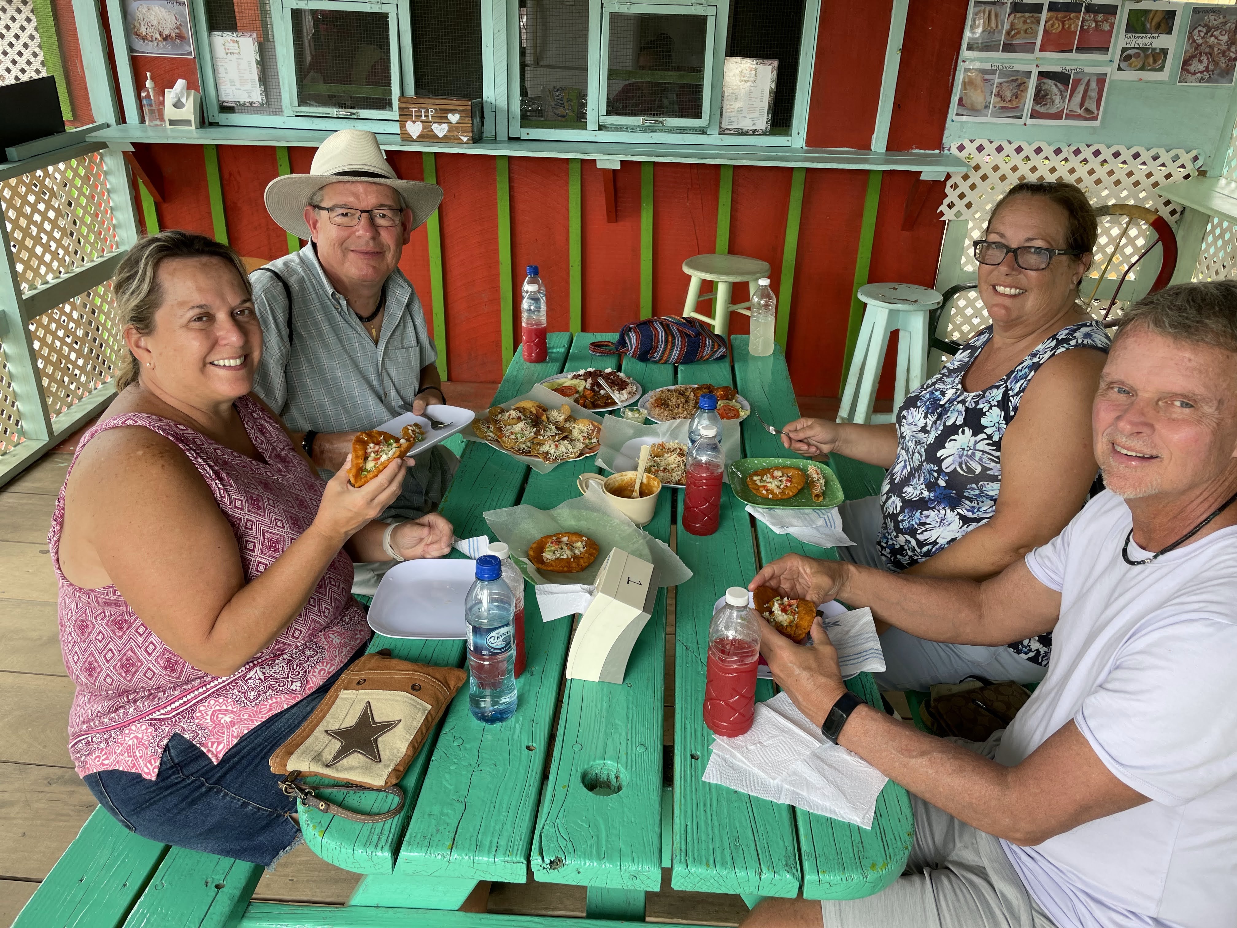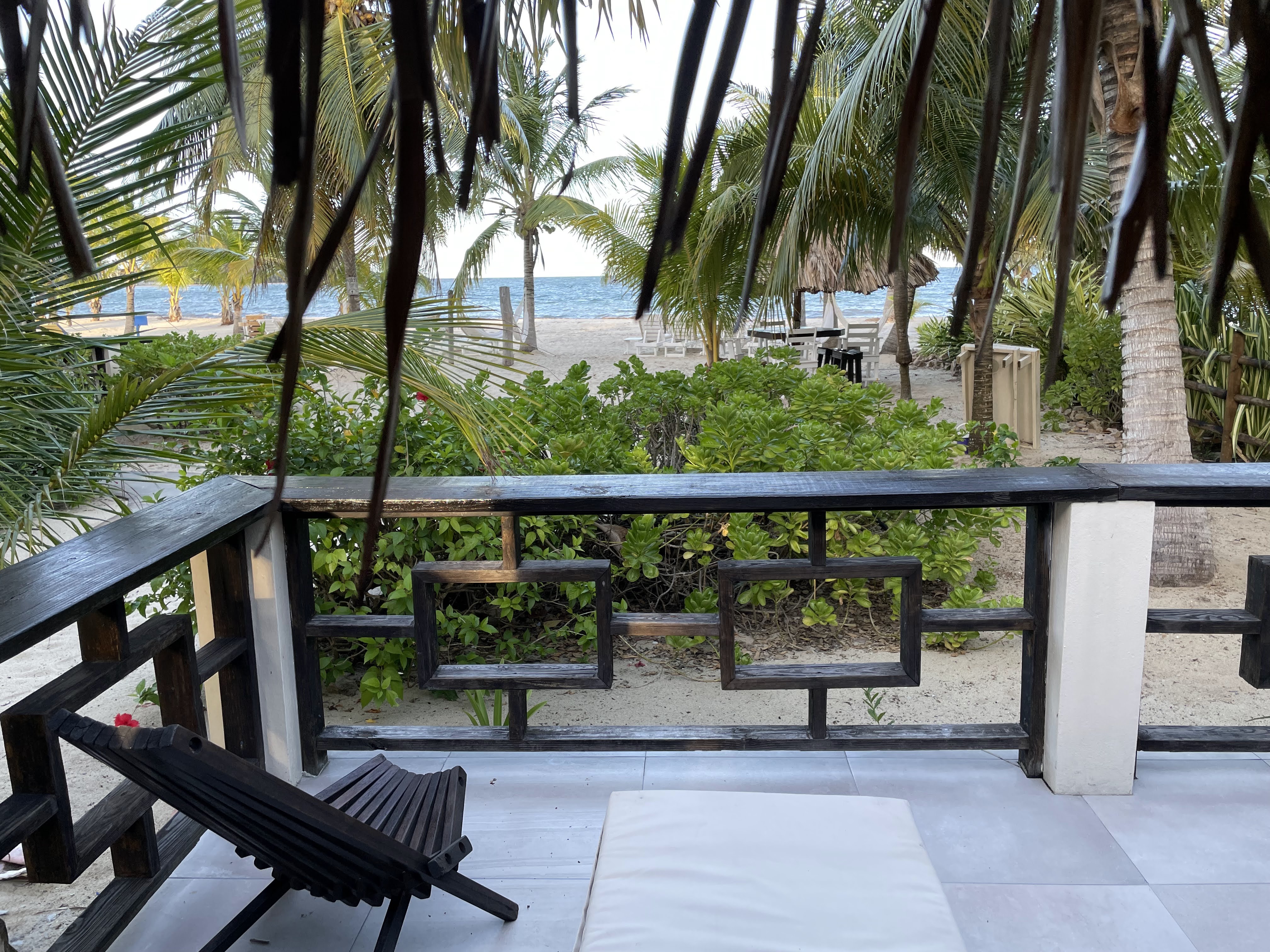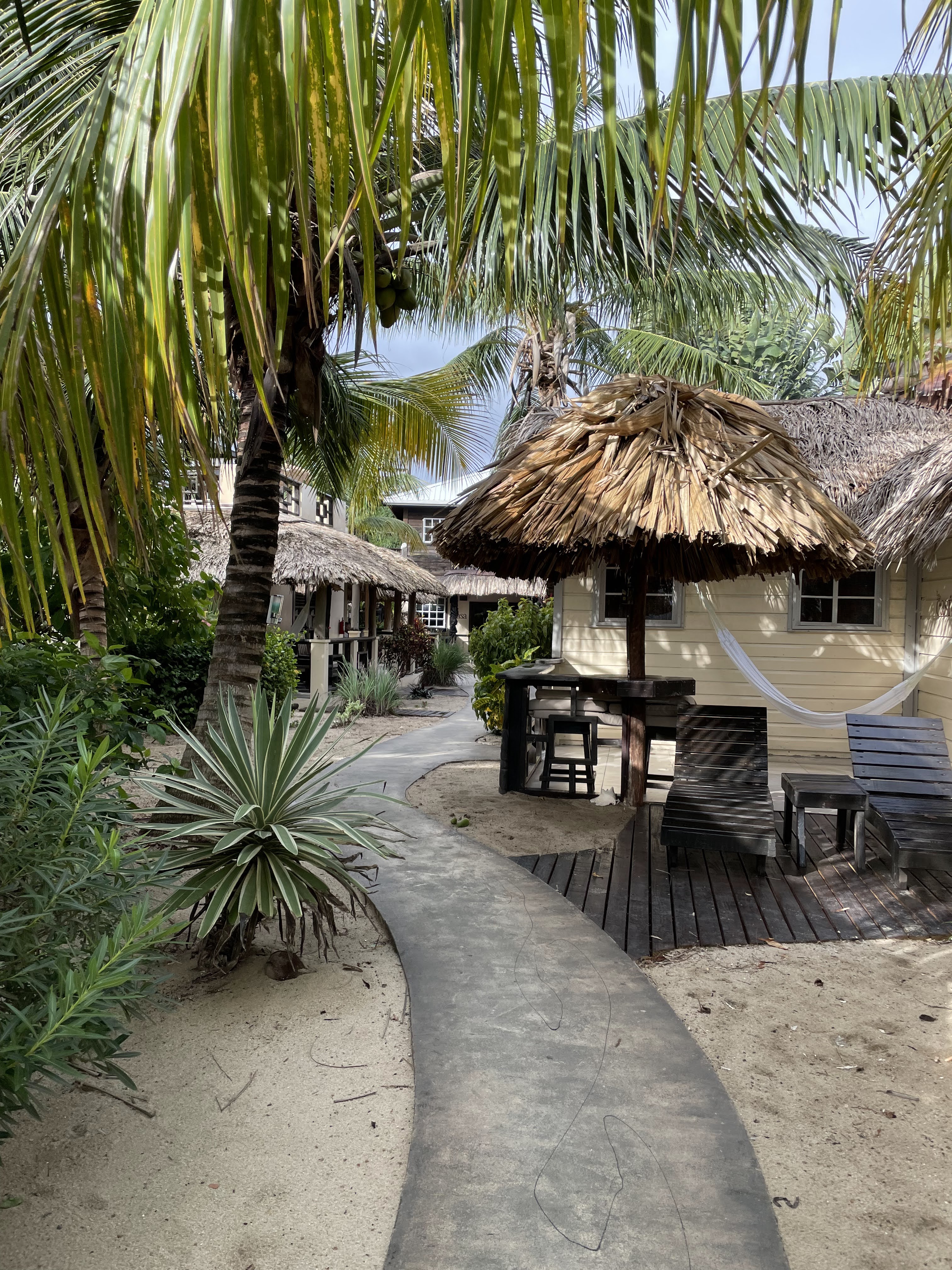 Our first morning there we decided we would treat ourselves to a good breakfast in the village, even though breakfast is available at the CBC (not only is it delicious, but they bring it to your room). So we set off around 9 am, and we weren’t too far into our walk when Karen and I were both wilting. It didn’t seem that hot temperature-wise, but high humidity and no breeze made it stifling. And when we were almost to the restaurant we were informed by a local that it was closed for renovations! We walked back into the village, a hot and sweaty mess, and had a traditional Belizean breakfast at Strange Brew. Tim and I ended up at Strange Brew later in our trip, for drinks, and met a bunch of American expats living “la vida loca” 😂
