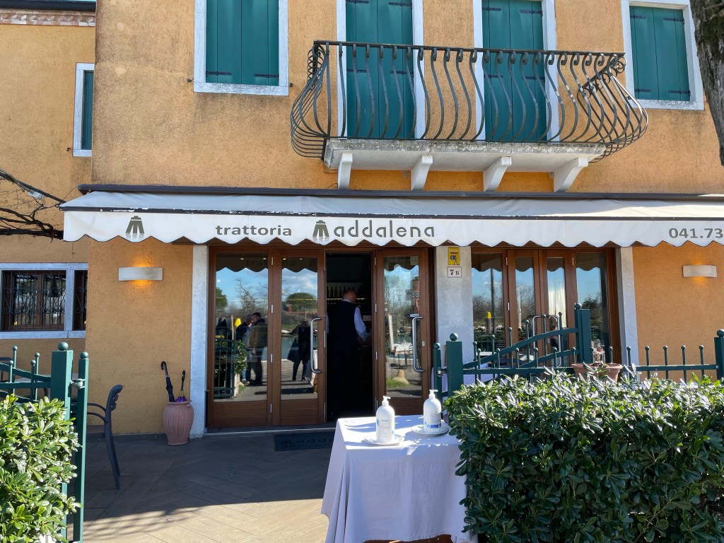 After our tasting, we wanted to have lunch someplace close. Luca suggested walking to Burano for lunch, but we were on a schedule and had to get back to Venice for another activity. We chose to eat lunch at Trattoria alla Maddalena, which was just a short walk from the Vaporetto stop. It was delicious! And the sun came out!