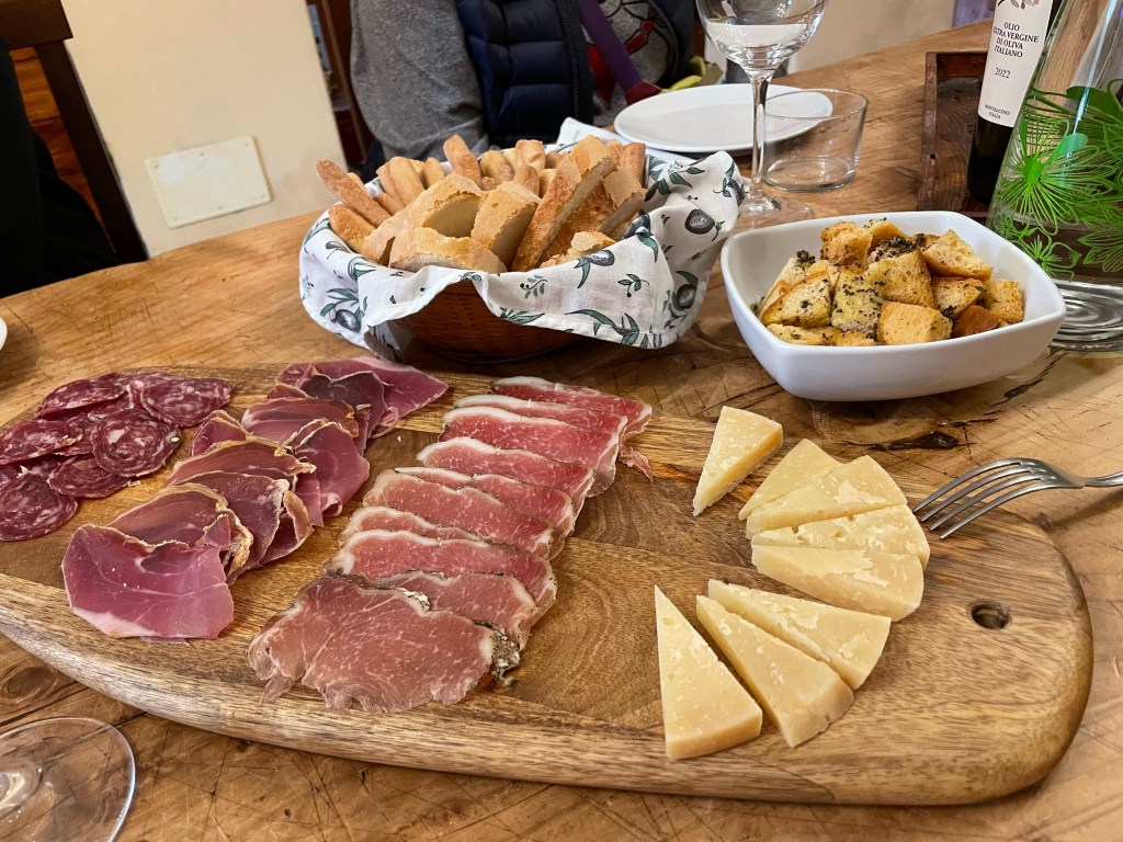 The whole reason we were eating light for lunch is because we had booked a traditional dinner in a local home for that evening. Our hostess was Patrizia, and she didn’t speak English, so her best friend Jeanette, who was originally from Canada, was our interpreter. They were so cute together! And Jeanette has a story like many English-speaking people we met – they came to Italy either during or right after college, and never left. Jeanette has been in Italy for 40 years.