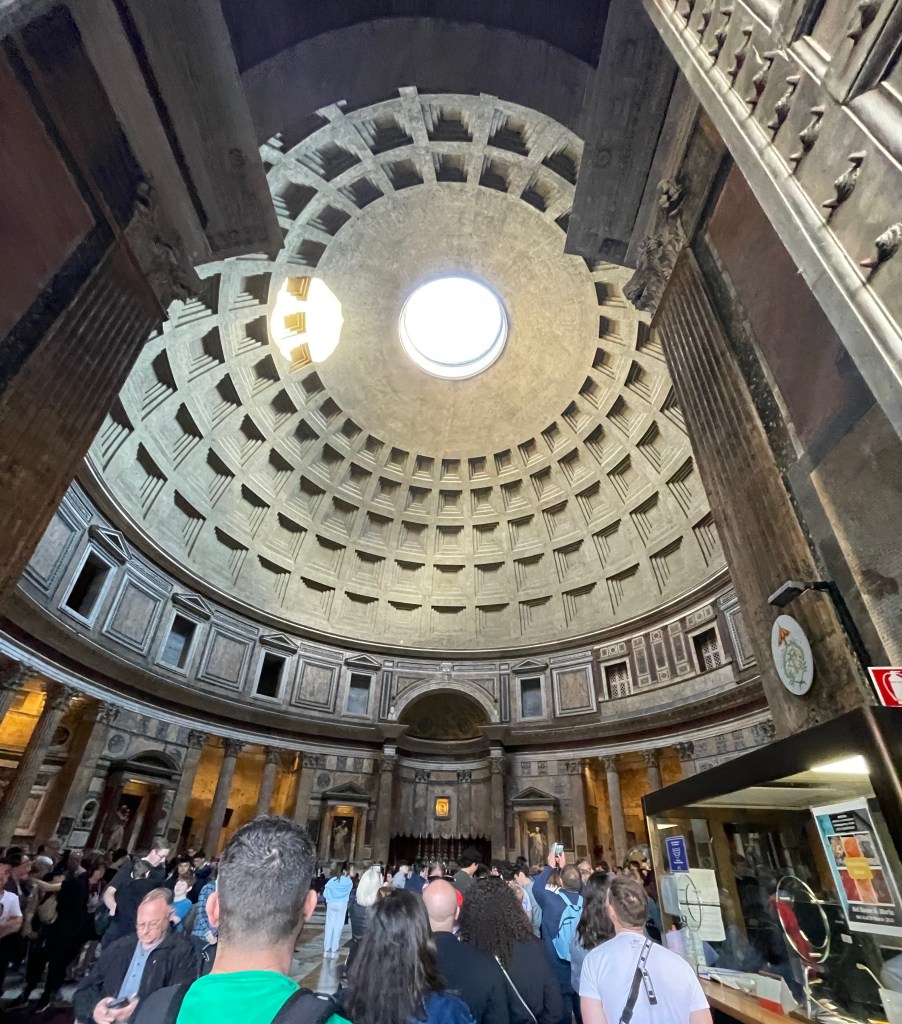 First things first – Susan’s favorite site in Rome is the Pantheon, and it wasn’t very far from our hotel. Since we were pretty much equidistant from both the Pantheon and Trevi Fountain, we walked first to Trevi Fountain then the Pantheon. Both sites are crazy busy! The Pantheon is free, and don’t let the long line dissuade you from going. It is fantastic! Not only is it over 2,000 years old, but had the world’s largest unreinforced concrete dome, with a central opening to the sky.