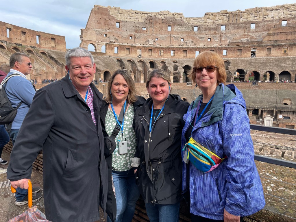 On to our last day in Rome. We had scheduled a tour of the Colosseum, the Forum, and Palatine Hill. This is probably the most visited and iconic landmark in all of Rome, if you exclude the Vatican. Our tour guide was was fantastic! The colosseum is crowded, but he did a good job of keeping our group away from other groups. One observation – the steps in the colosseum are very steep and high! For a short girl I almost needed a ladder 😂 … and I was wondering how the Romans did it “back in the day” since their average height was 5’5″ and they were wearing togas (I assume).