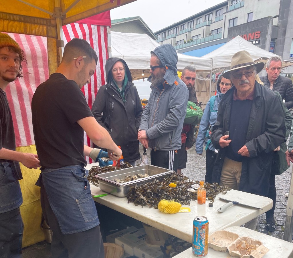 That afternoon we attended the Oyster Festival to watch the shucking championship. We had heard there was going to be a parade somewhere around Eyre Square for the festival, so Susan and I headed out to see what we could see. A drum line made up of children escorted the shucking contestants, who each held their country’s flag, from Eyre Square to Nimmo’s Pier. Susan and I joined right in and became part of the parade. It was so much fun!