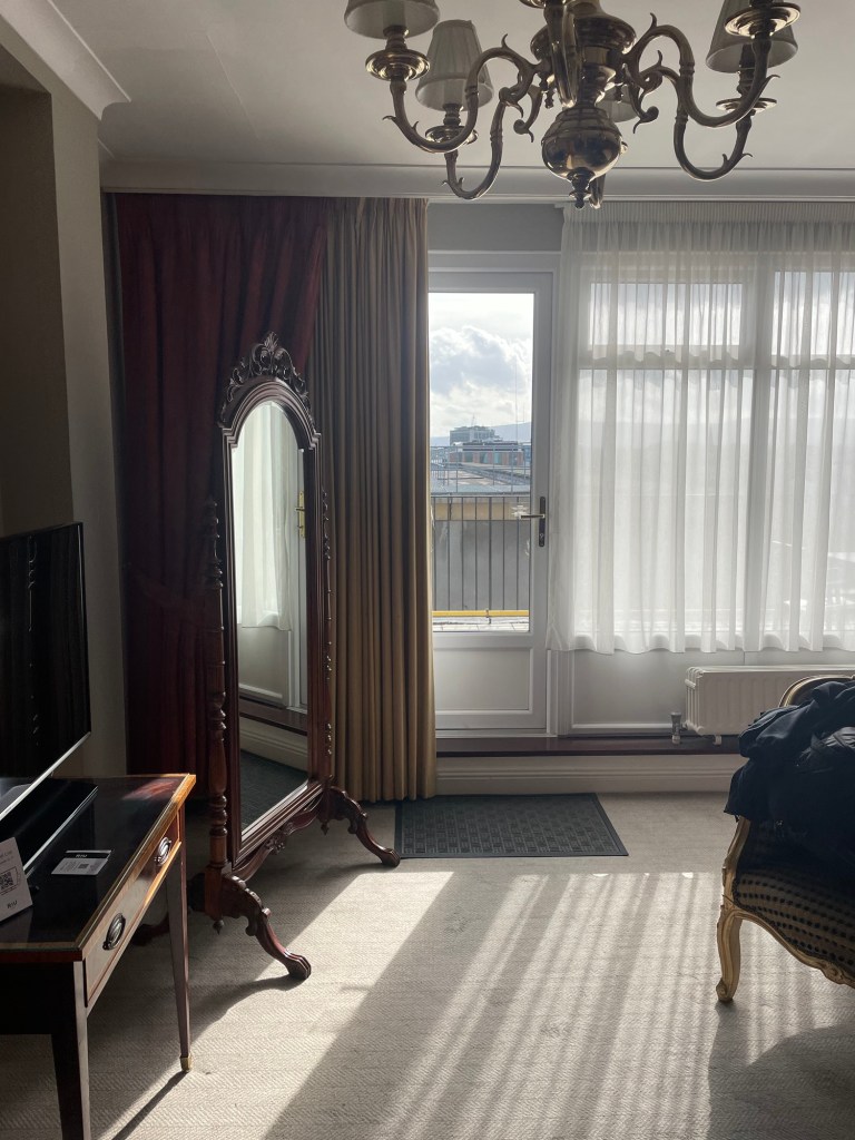 Our time in Kilkenny was coming to an end. We had scheduled a mid-morning train to Dublin, which takes approximately one and a half hours. It was a very comfortable ride, as usual. We were staying at The Gresham Hotel, which is on the north side of the Liffey. It is a huge hotel, and our rooms weren’t going to be available until later. When we did finally get our room, I felt like we were staying in “the North 40” (if you know, you know). Even though it took a while to get to our room, the room was nice, quiet, and comfortable.