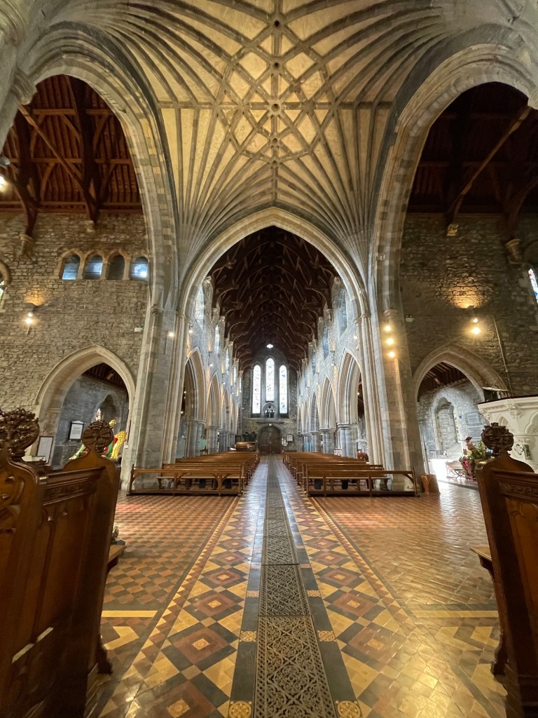 After our tour of Kilkenny Castle, we walked down to St. Canice’s Cathedral. As you know, we can’t pass up a church! This cathedral has a round tower next to it that brave souls can climb – Tim and I did this about 20 years ago, and decided to forgo the climb this time. The building dates from the 13th century, and was built on the site of a Celtic Christian monastery that was founded in the 6th century by St. Canice. Members of the Butler family (remember Kilkenny Castle?) are buried here.