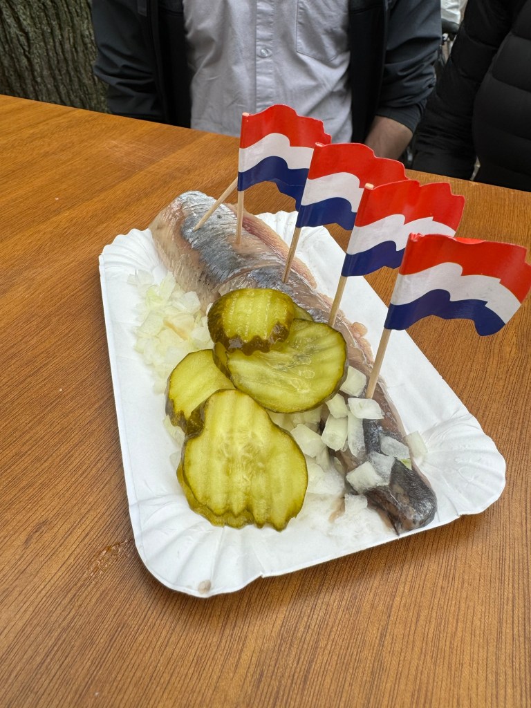 Back to food! We left the Begijnhof and walked to Herring Stall Jonk to taste herring (of course). Herring is traditionally eaten raw with onions and pickles. The Dutch will eat a whole fish in three bites – we didn’t do that. The fish was cut into smaller pieces for us squeamish tourists. Even with my queasy stomach I thought it tasted fine, and Mr. T loved it! I think it is something you definitely need to try if you are going to be in the Netherlands.