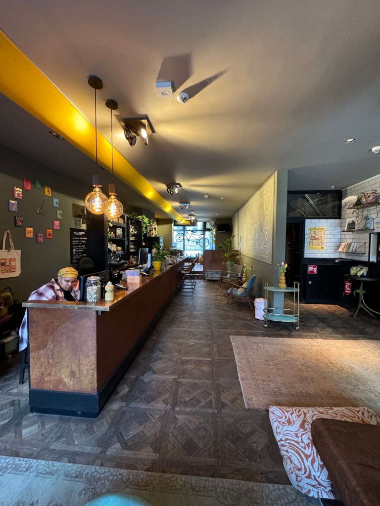 That afternoon we met up with one of our friends, Patrick, who was in the midst of his whirlwind European vacation. We were so excited! He was staying basically across the street from the Museumplein, at the Max Brown Hotel. We met him at his hotel after lunch. The Max Brown Hotel looks super trendy and cool, and really fit Patrick to a “T”. On a side note, there are several steep stairs you need to navigate to enter the hotel (though I did hear there was a side entrance with no stairs). I wouldn’t want to try to do that if I had a couple of glasses of wine in me 😁! But Patrick’s room was very hip, and it would be a hotel I would recommend for anybody (especially hipsters) coming to Amsterdam.