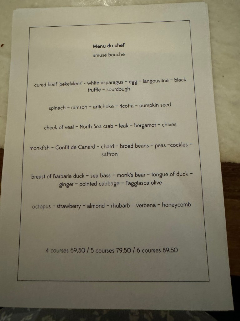 Patrick and I had researched ahead of time a restaurant to go to that would have great food and wine but not break the bank. We chose Kaagman & Kortekaas, and this place was amazing! We had the best food, service, and overall experience – I could not have been happier! We all chose to have the six-course tasting menu, and added the oysters as a starter or seventh course. The wine served with each course was divine and enhanced the food experience. And a plus for me, duck was featured in several of the courses 😋. We had the best time and would definitely do this again!