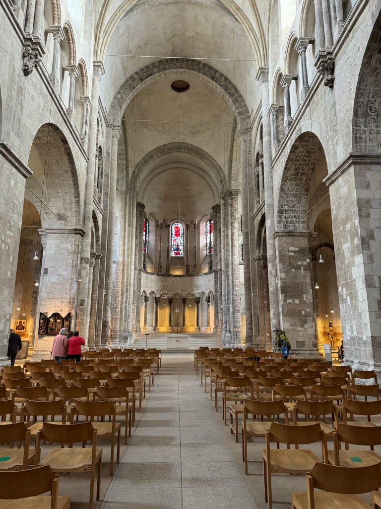 We also wanted to visit a church that we could see from our hotel room window, the Great St. Martin Church. This church’s foundations were built on the ruins of a Roman chapel, from around the year 960. During WWII, the church was heavily damaged, but has since been restored. It is well worth a visit if you are in Cologne, and is a stark reminder of the collateral damage that is done during war time.