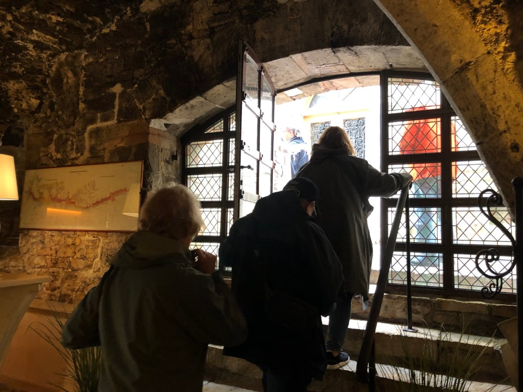 While we were eating, Susan, Sarah, and Patti were checking into their hotel, the Abbaye de Maizières, a former 12th century abbey. Susan was in heaven! She said this was her favorite hotel in France, and maybe her favorite hotel ever! There is a doorway to enter the hotel, but when we came to visit them, we entered through a window 😳. It really is something to see, and as long as you don’t have any mobility issues, is a great place to stay.