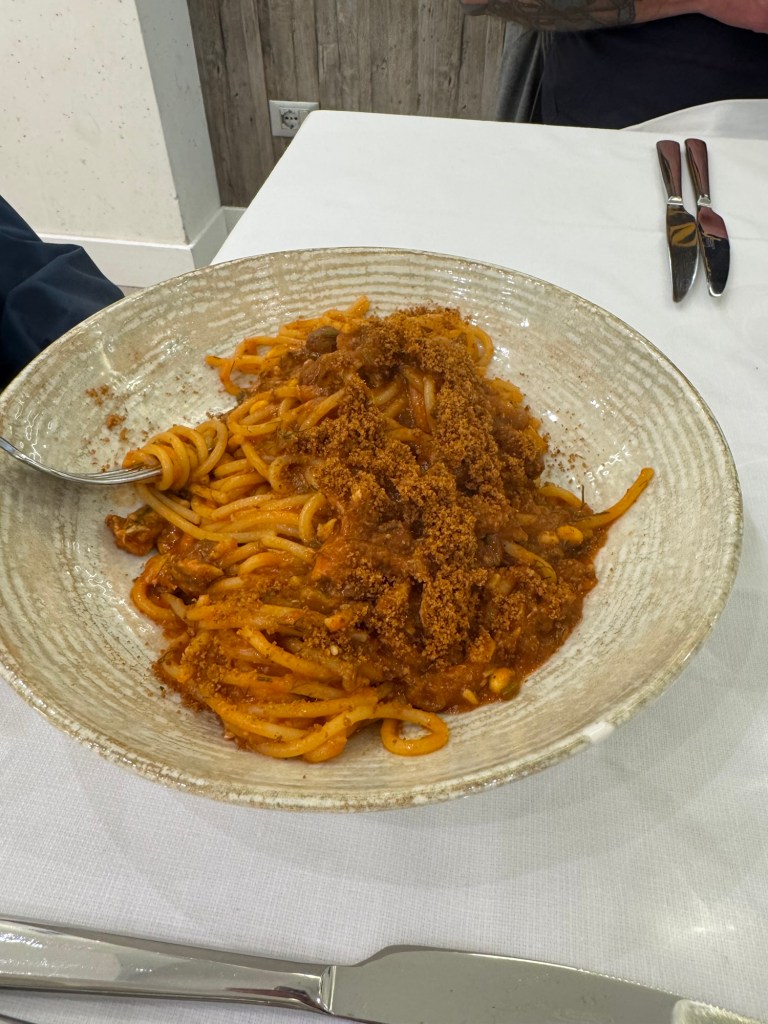 We left Selinunte and arrived in Sciacca for lunch. Our bus driver pointed out several restaurants that he recommended, and we all spit up. Some of us went to Trattoria Al Faro, a place close to the pier and known for their fresh fish. The food was delicious and one of the highlights of our trip!
