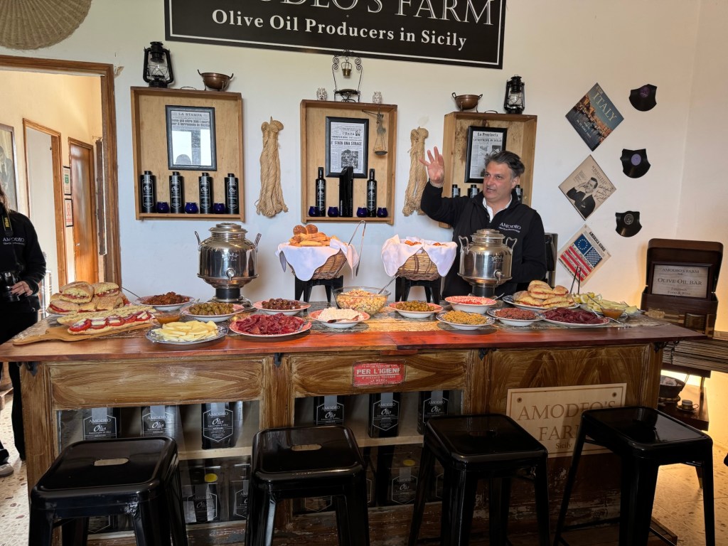 The next morning we headed to the next town over from Montevago, Santa Margherita, to meet Jen’s friend Ciro at his business Affettu. He wanted to meet everyone and feed us, of course. Just a small tray of meat, cheese, and bread, mind you. It was delicious! Everything in his store looked amazing, and I brought some pasta to bring home. Of course he added two additional packages of pasta for free when I checked out. As we have found out this week, this is typical Sicilian hospitality!